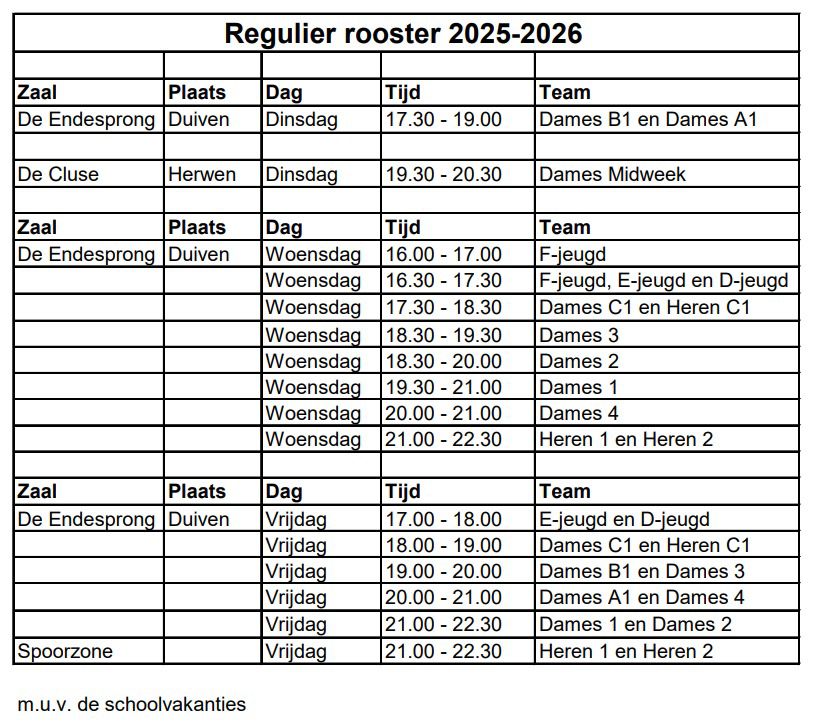 Trainingstijden 2025 - 2026